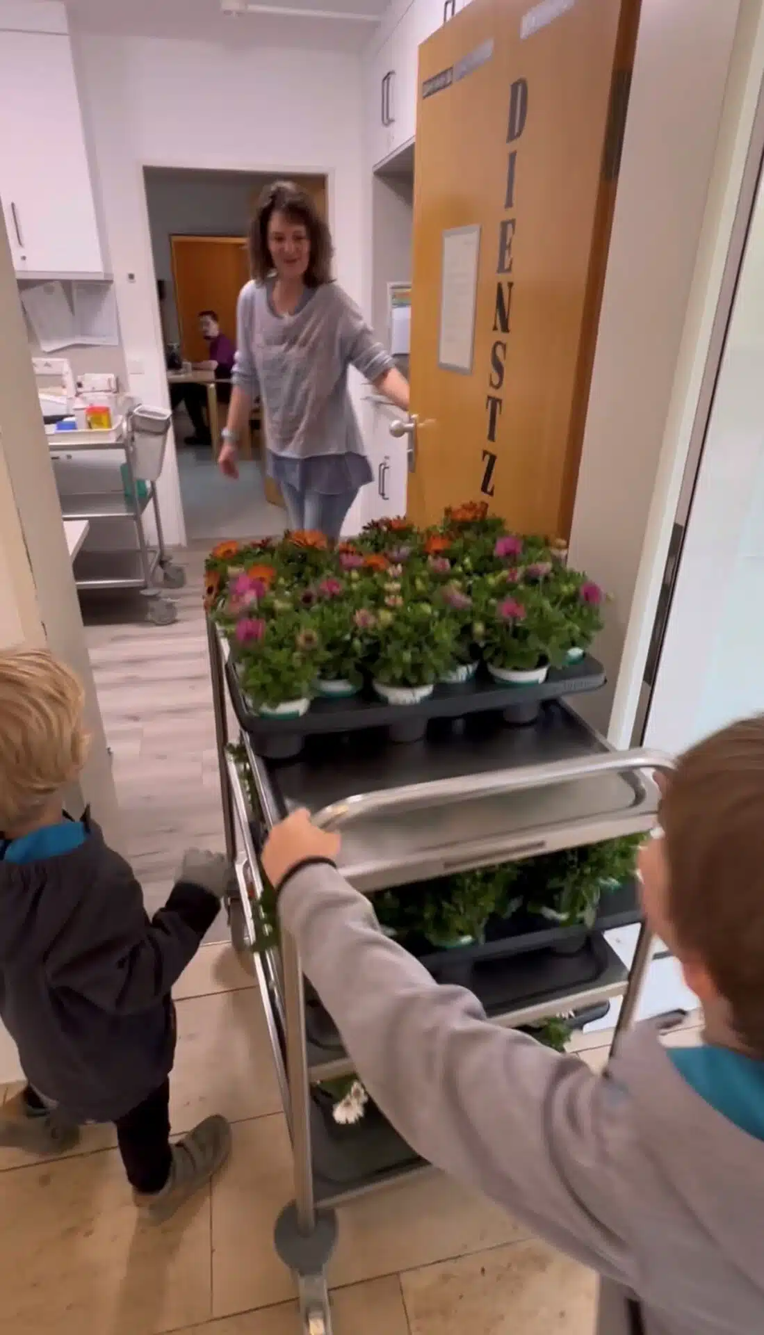 Einrichtungsleiter Tobias Vormann verteilte gemeinsam mit seinen beiden Söhnen süße Leckereien und farbenfrohe Pflanzen direkt in die Dienstzimmer. Eine liebe Geste, die für viele strahlende Gesichter gesorgt hat